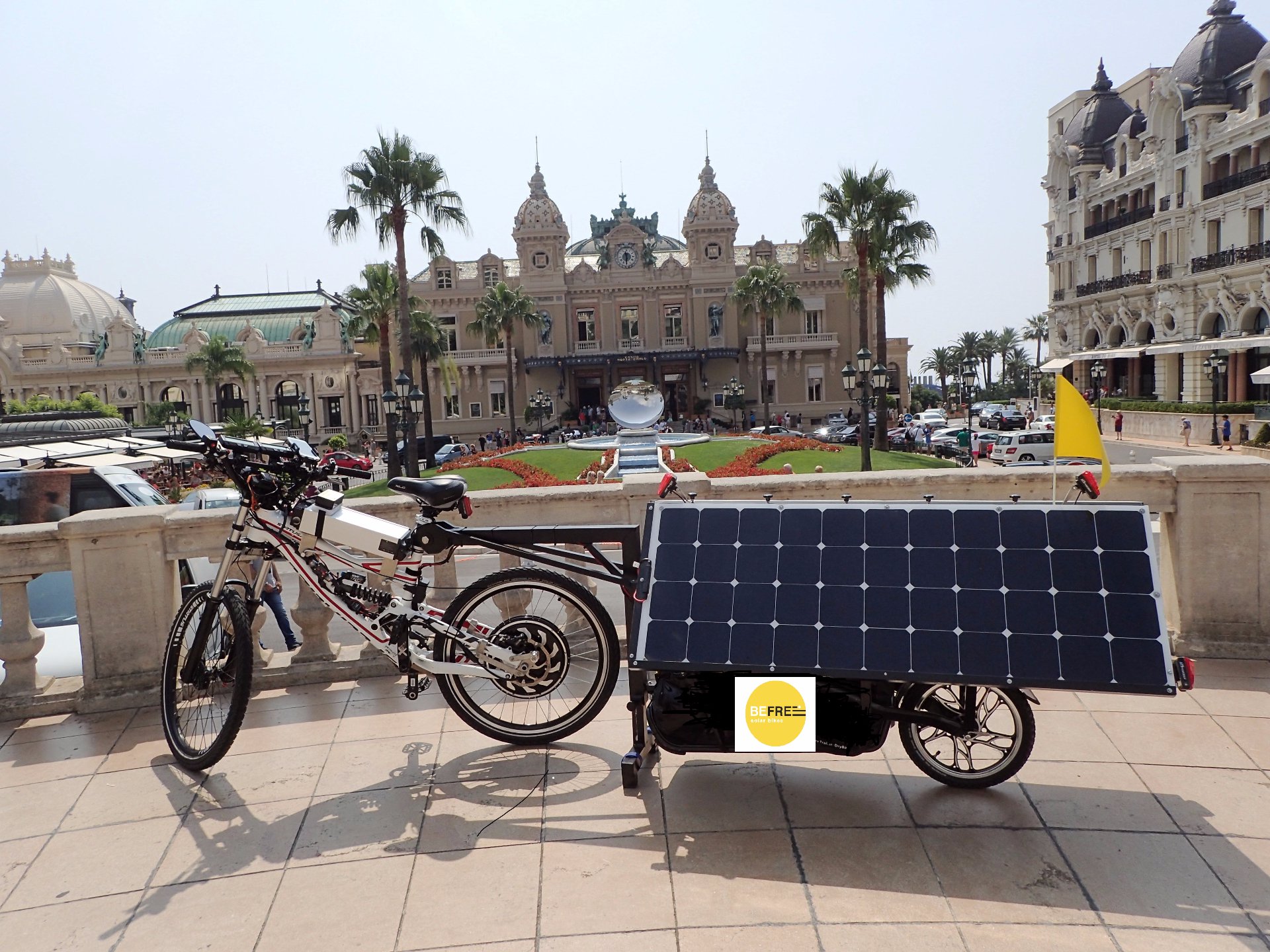Solar trailer is very resistant to external influences and the static load. It is extremely mobile both in cities and in open spaces. It has four electric actuators, which raise the solar panels towards the sun for greater efficiency during a rest. When driving, the panels can be lifted and the efficiency is 270 W and 10 Ah, or suspended where efficiency is up to 170 W, 6.5 Ah. Lithium batteries for normal electric bicycles have to be charging from 4 to 5 hours and can be used only up to 100 kilometers distance. With the help of BEFREE Solar Bikes we can cycle up to 300 km daily with no charging necessary.